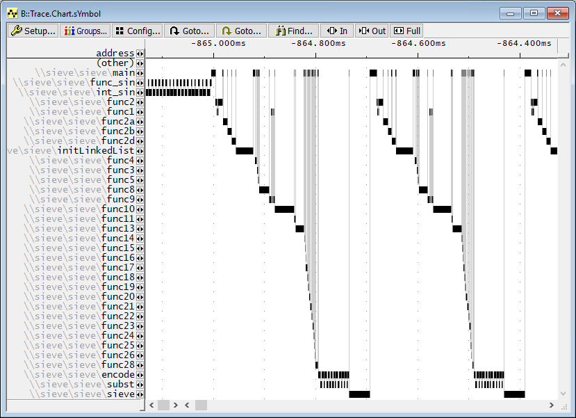 Other options are there to offer fine tuning of the NEXUS interface, for example suppressing the generation of certain types of messages when the FIFO becomes nearly full; causing the processor to stall until a full FIFO has been emptied to ensure no loss of trace data; or adding program trace correlation messages to improve timing for certain statistical analyses. All of these options are fully described in the excellent Lauterbach documentation.