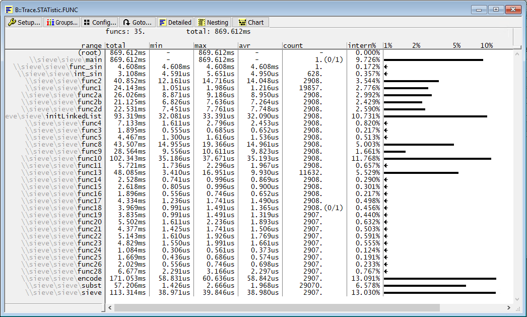Want to view minimum, maximum and mean runtimes for your functions? Want to see how many times a function was called during a test? No problems.