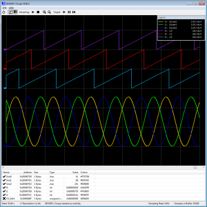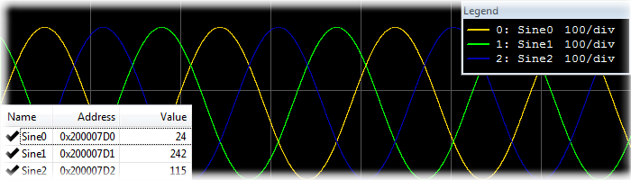 J-Scope uses the High-Speed Sampling feature (HSS) of J-Link which allows to periodically read data from a target microcontroller without stopping it.
